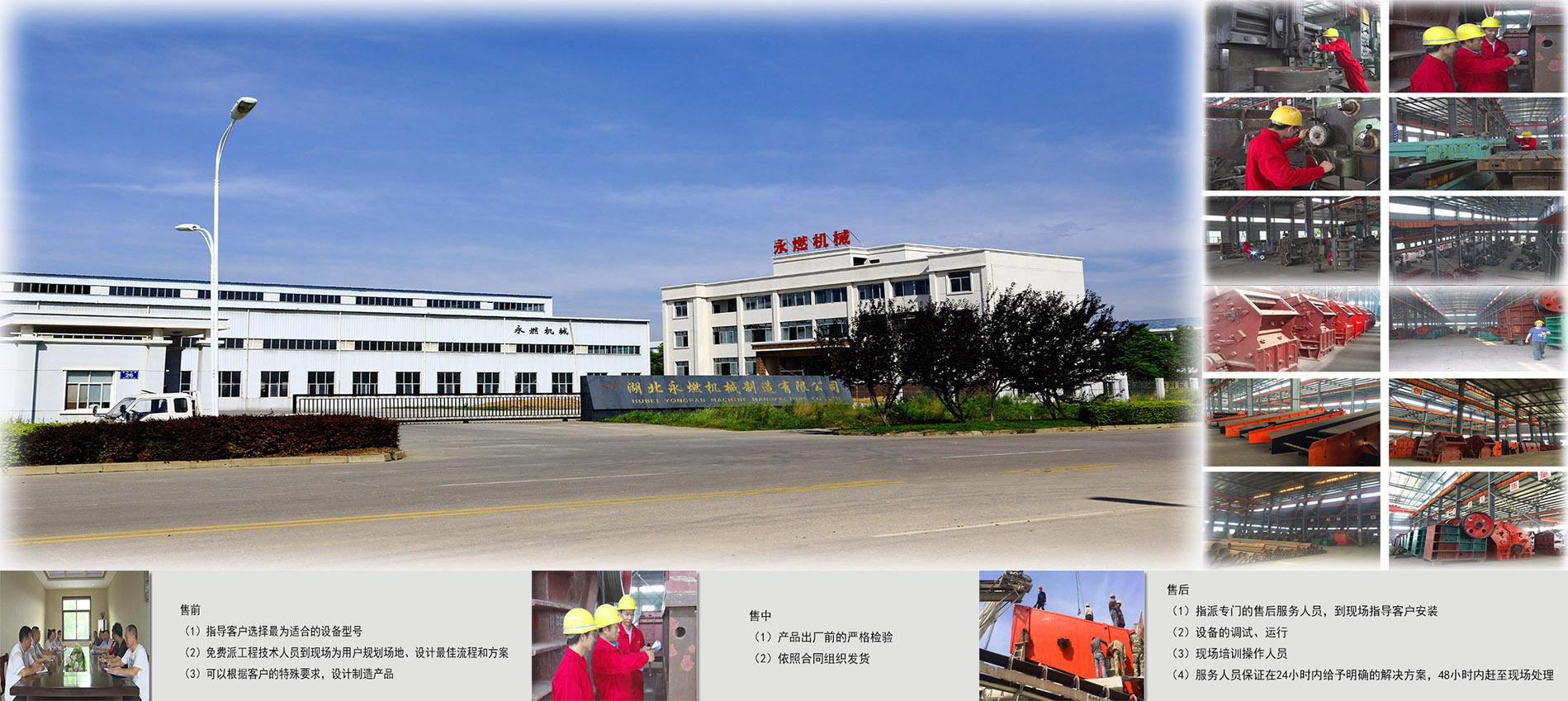 湖北永燃機械制造股份有限公司始建于2003年4月,位于湖北省松滋市,生產基地占地68000平方米,現代化廠房18000平方米,專業的技術與服務團隊打造了經久不衰的永燃品牌。 我司是一家集研發、生產、銷售、服務于一體的技術型企業。從業16年來,始終致力于礦山破碎設備、制砂設備、礦料篩選、皮帶輸送,為礦山、公路、鐵路、水電等大型工程項目提供了高品質的成套設備和解決方案。主要生產經營各類礦山給料、破碎、篩分、輸送設備及配件,并承接產量為2噸-1000噸/小時的石料破碎篩分成套設備的設計、制造與安裝、主導產品有各種類型的顎式破碎機、硬巖反擊式破碎機、錘式破碎機、給料機、振動篩、皮帶輸送機等;我們憑著先進的生產管理與卓越的售后服務,暢銷于西藏、貴州、云南、重慶、湖北、湖南、四川、浙江、河南等20個省、市、自治區。近年來公司擴展外貿業務,將產品遠銷坦桑尼亞、越南、菲律賓等16個海外國家。